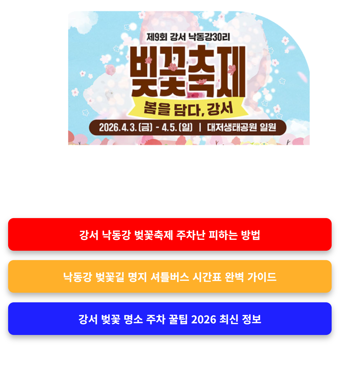 강서 낙동강 벚꽃축제 주차난 피하는 방법 찾고 계신가요? 강서 낙동강 벚꽃축제 주차난은 매년 반복되는 가장 큰 고민입니다. 특히 강서 낙동강 벚꽃축제 주차난 피하는 방법을 모르고 방문하면 주차만 1시간 이상 걸리는 상황도 흔합니다. 오늘은 2026 최신 기준으로 실제 효과 있는 방법만 정리해드립니다.
