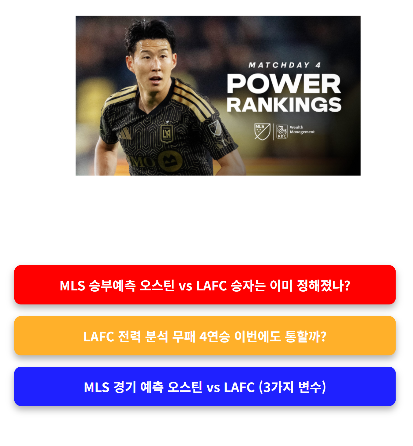 순위는 단순 결과가 아니라 누적된 경기력의 결과입니다. LAFC는 매 경기 안정적인 경기 운영을 보여주고 있으며, 오스틴은 특정 경기에서만 좋은 모습을 보이고 있습니다.