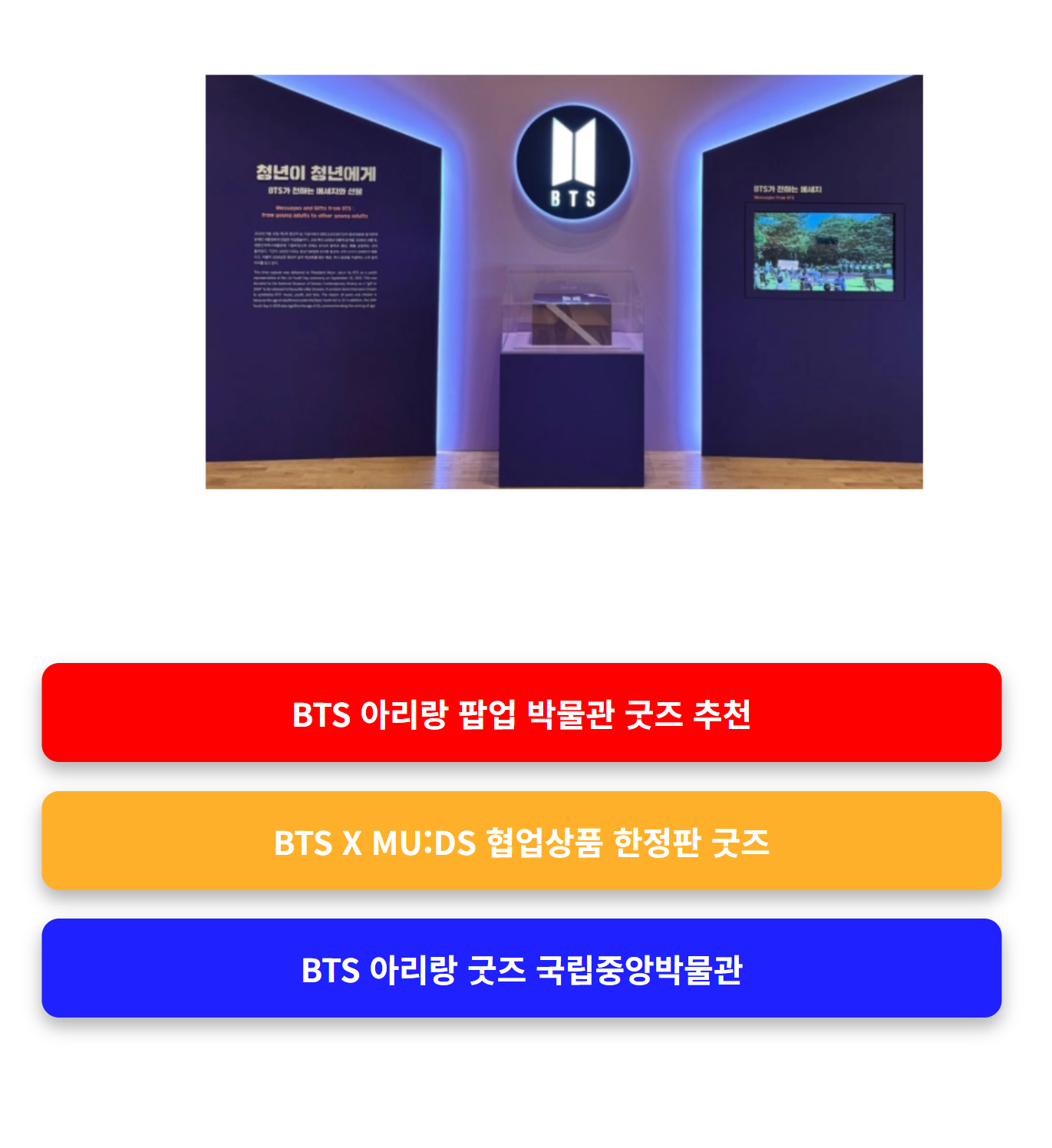 지금 가장 많이 찾는 키워드, BTS 아리랑 팝업 박물관 굿즈 추천입니다. BTS 아리랑 팝업 박물관 굿즈 추천은 단순한 쇼핑 정보를 넘어 ‘어디서 무엇을 사야 하는지’에 대한 실전 가이드로 검색량이 급증하고 있습니다. BTS 아리랑 팝업 박물관 굿즈 추천을 제대로 알고 가야 실패 없이 원하는 제품을 구매할 수 있습니다.